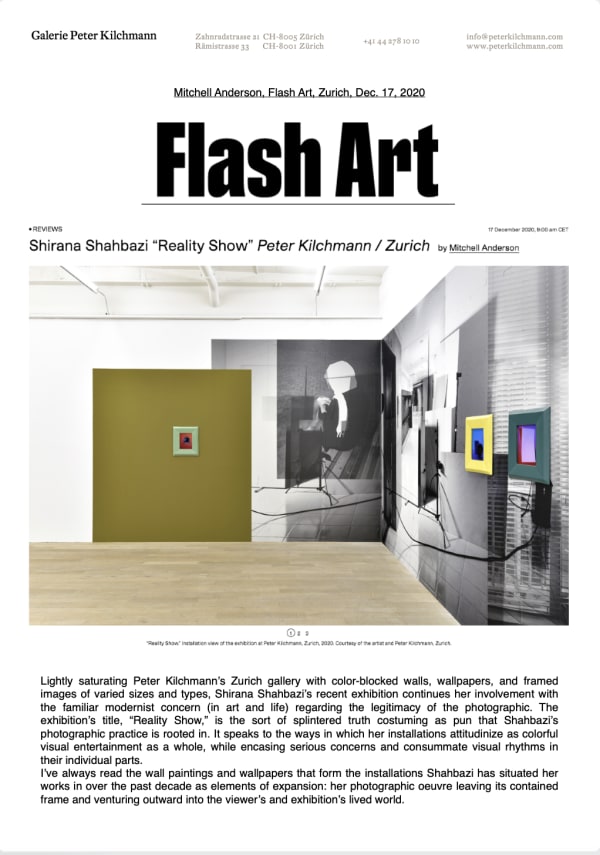 Reality ShowGalerie Peter Kilchmann, Zahnradstrasse, Zurich