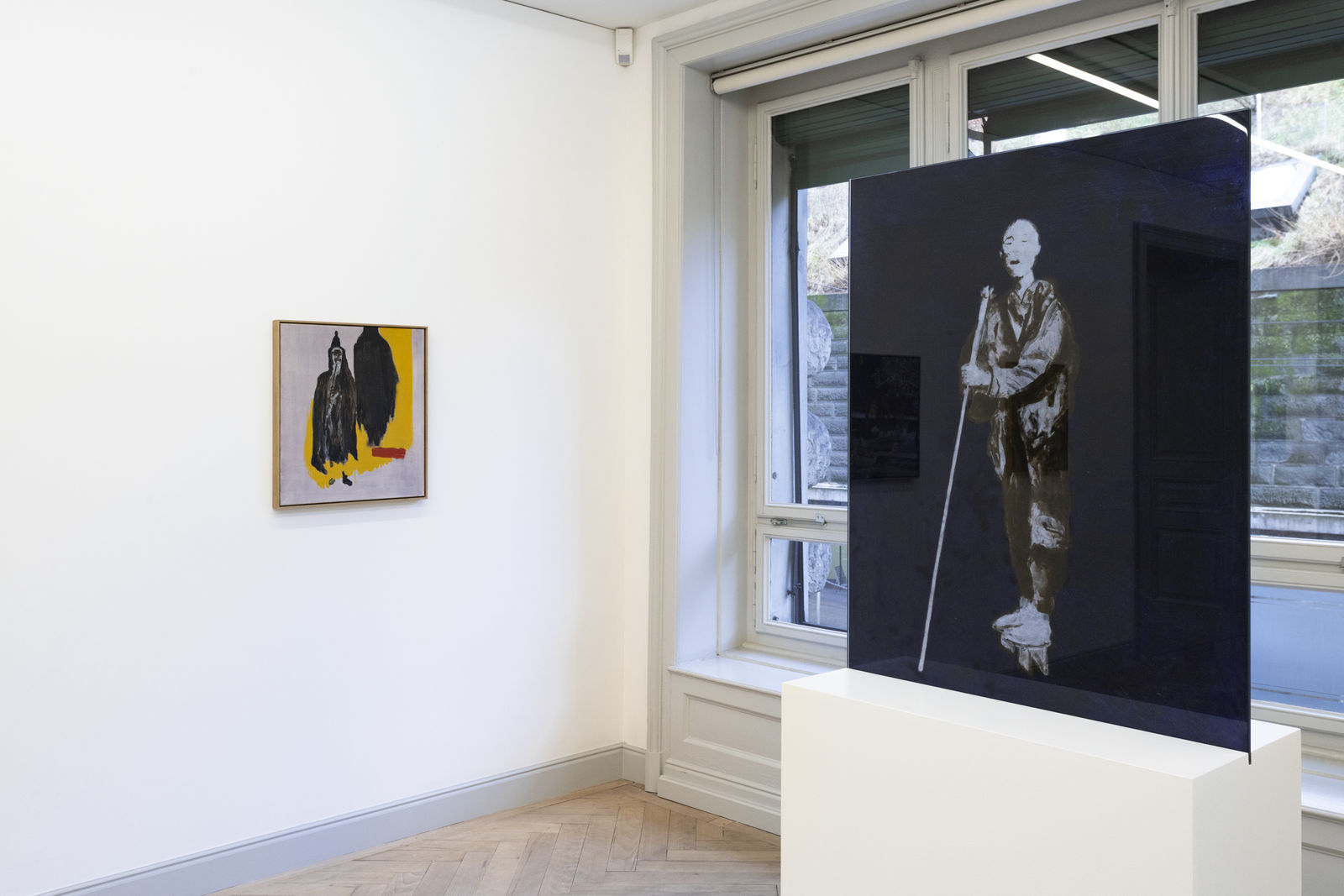 On the upper floor of the gallery, eighteen new small-format oil paintings on canvas, mostly portraits, comprise the central part of the exhibition. Reflections, mirroring, and pairings can be found throughout the various oil paintings in the three display rooms. Wittwer reinterprets cracks, incorrect exposure and damaged photo negatives in these works and complements them with surreal elements. In addition to folkloric and historical depictions of Eastern and African individuals, he painted a series of watercolors depicting boats and ships. These are a recurring motif in his oeuvre and have a particularly charged position in this exhibition. Ships and trading boats formed the basis of the geographical expansion of the colonial territories. As a means of transport and as status symbols, they were also a fundamental component for the natives to celebrate their traditions. The artist references this fact in the oil paintings Schiff (Boat) and Charon, amongst others.