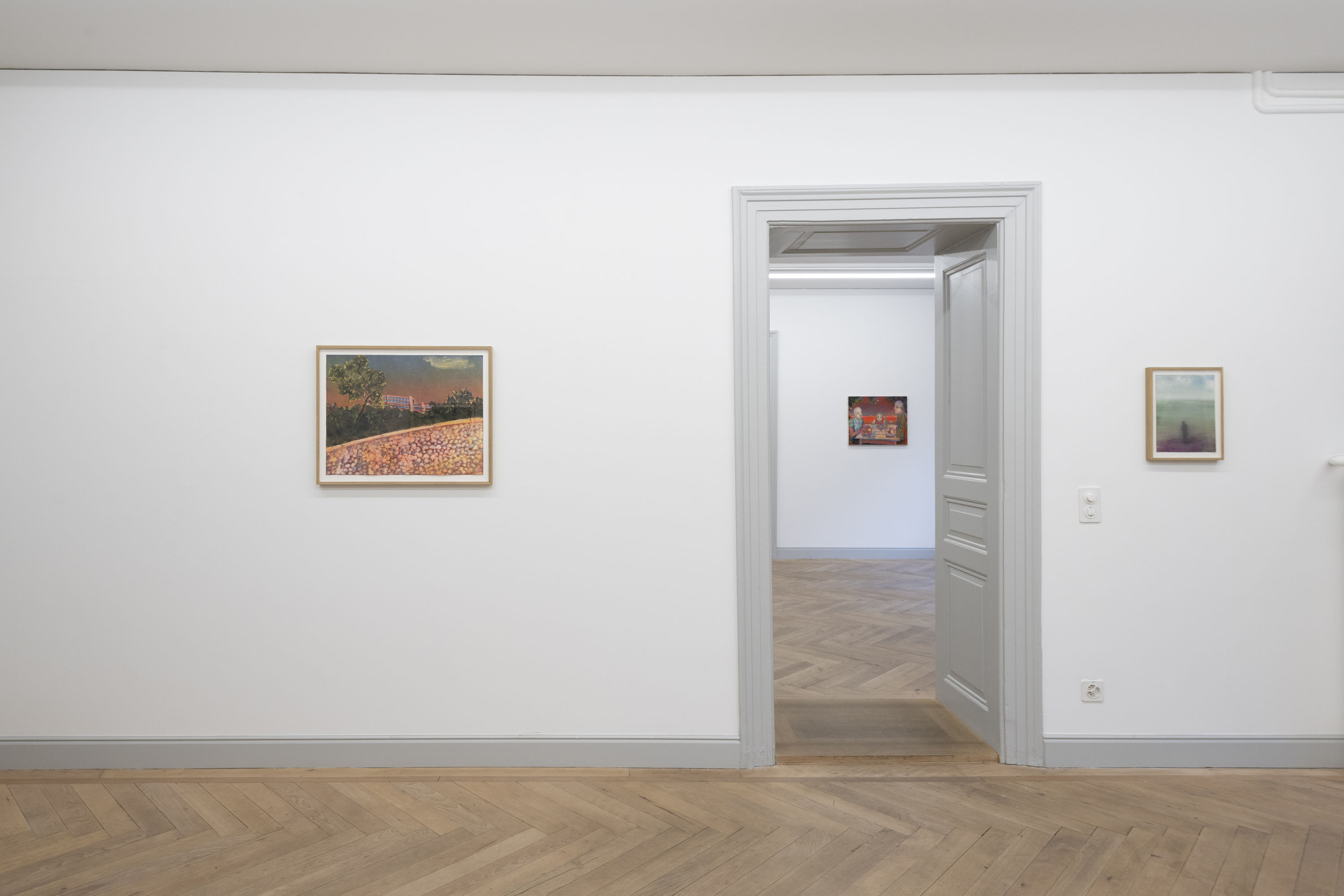 Galerie Peter Kilchmann is pleased to present Nasse Augen (Wet Eyes), the fourth solo exhibition by Swiss artist Andriu Deplazes (*1993 in Zurich; lives and works in Marseille and Zurich). The title references his solo exhibition Rote Augen (Red Eyes) at the Bündner Kunstmuseum Chur in 2019. While Rote Augen represented raging anger, wrath, and a loud outcry, Nasse Augen symbolizes letting go, liberation, and the courage to finally cry. The sense of powerlessness, as a reaction of the individual to seemingly insurmountable, complex issues in our present moment, reverberates. The exhibition embodies the artist's development: his work has matured, solidified, and he convincingly demonstrates his quality as an outstanding painter.Through his works, Deplazes explores the three floors of the Rämistrasse with themes that reflect political, global, and personal processes: human beings and their connection to nature, family constellations, protection, exclusion, and precarity—motifs already familiar from his previous body of work. Water appears in many of his pieces as a unifying element, while another central theme is the search for mechanisms of protection, security, and intimacy, or, conversely, the act of liberation—a dynamic interplay between the inner and outer realms. The exhibition features new paintings on canvas, works on paper, ceramic sculptures, and paintings on glass, some of which are presented in light boxes. In his use of colors and atmospheres, the artist has drawn inspiration from Ernst Ludwig Kirchner, Lucian Freud, Maria Lassnig, and other artists of classical modernism.